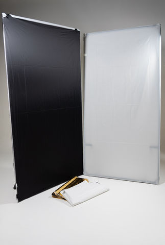 Softboxeja ja valonmuokkaimia (mm. Spotlight, 2kpl Walimex pro 5-in-1 Reflector Panel 100 x 200 cm, 2kpl black flag)